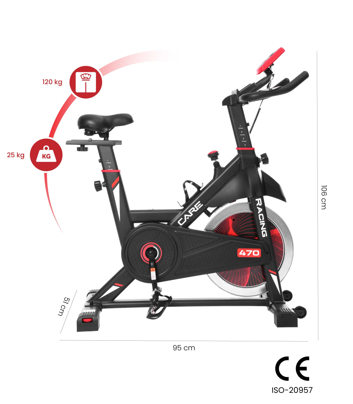 Roue d'inertie : Le Spin bike racing 470-475 est idéal avec sa masse d'inertie de 12Kg qui vous permet de ne sentir aucun à-coups et de régler la résistance précisément