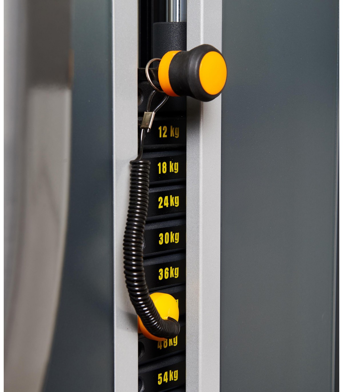 Les poids se trouvent dans la colonne de charge, protégés par un carter assurant une sécurité optimale.