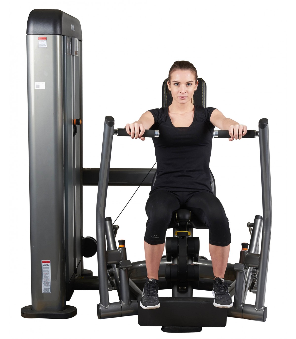 Cette presse de musculation permet de travailler les pectoraux en charge guidée avec une charge max pouvant aller jusqu’à 96 Kg.
