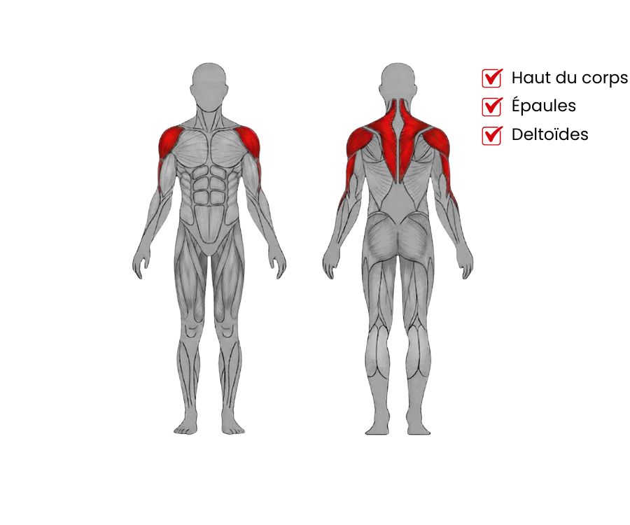 Le travail sur cette presse cible prioritairement l'hypertrophie des deltoïdes tout en engageant les triceps et les trapèzes comme muscles stabilisateurs. La trajectoire de mouvement respecte la biomécanique naturelle de l'épaule pour maximiser le recrutement musculaire sans stresser inutilement la coiffe des rotateurs. Le travail en phase excentrique est facilité par la stabilité du siège ce qui permet de contrôler la descente pour favoriser la congestion musculaire. L'utilisation de la charge libre offre une liberté totale dans la gestion de l'intensité permettant de réaliser des techniques avancées comme le dropset ou le cluster set. La posture assise avec le dos bien calé contre le dossier sécurise les lombaires et évite les mouvements de compensation du buste pour une isolation pure. Cet équipement est l'outil idéal pour les sportifs cherchant à améliorer leur force de poussée verticale et le galbe de la chaîne antérieure. L'ajustement précis de la résistance par l'ajout de disques permet de calibrer l'effort selon les objectifs de puissance ou d'endurance musculaire recherchés par les athlètes de haut niveau.