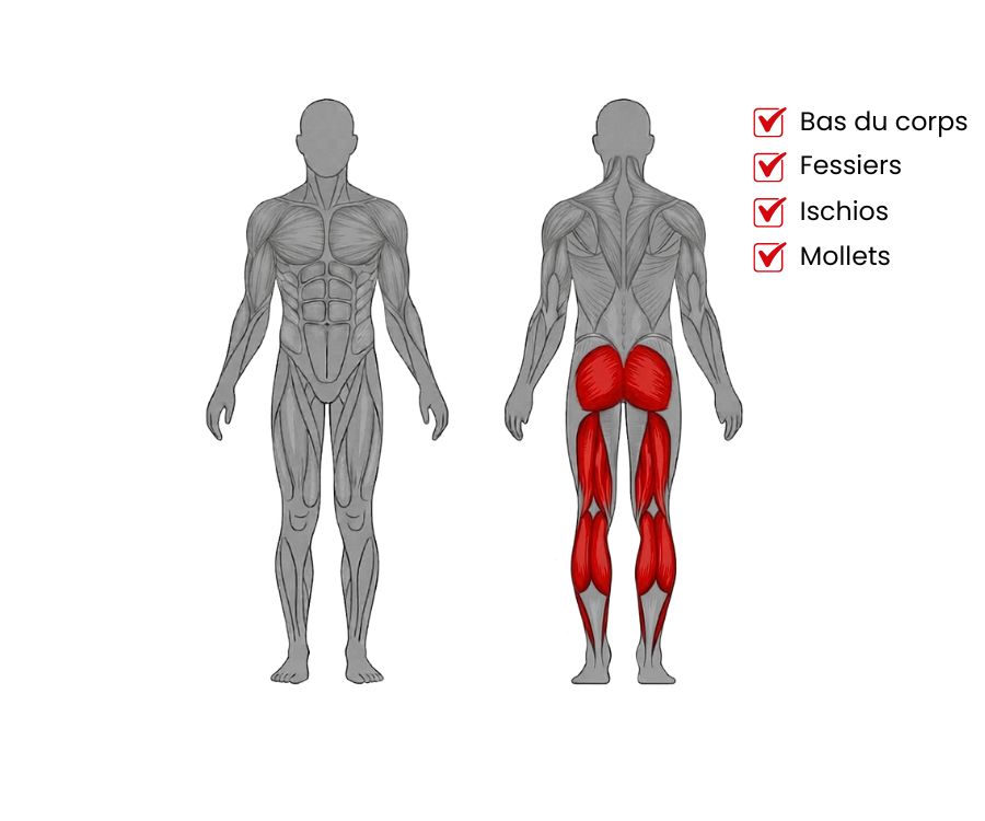Cet appareil est conçu pour un travail unilatéral strict afin d'isoler chaque fessier séparément, garantissant une concentration maximale sur le muscle sollicité.