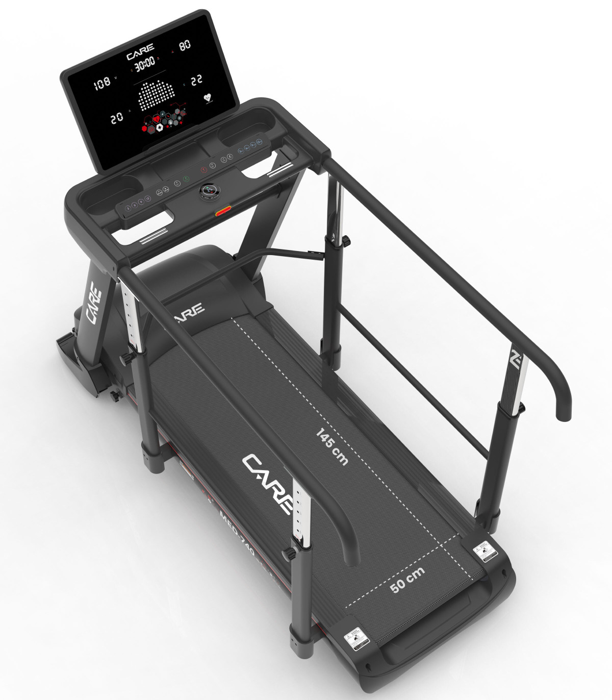 Le tapis de course MED-740 a été spécialement conçu pour répondre aux besoins d’entraînements exigeants et encadrés. Grâce à sa puissance, il atteint une vitesse maximale de 14 km/h et propose 20 niveaux d’inclinaison réglables directement depuis son compteur. Son interface tactile ergonomique permet un suivi clair et précis des performances, garantissant une utilisation fiable et adaptée aux environnements spécialisés.
