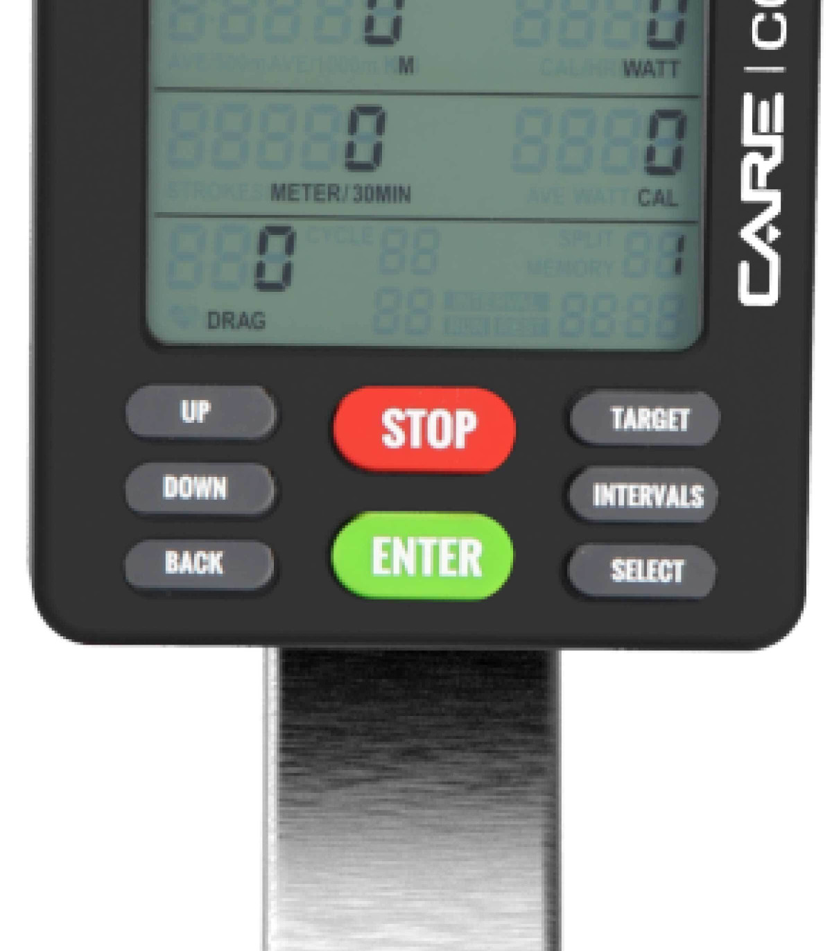 L’écran LCD intègre toutes les données nécessaires à votre suivi : cadence (RPM), puissance (Watt), distance, calories, fréquence cardiaque (nécessite une ceinture thoracique), temps et moyennes. Vous conservez la maîtrise de votre progression séance après séance grâce au mode mémoire.