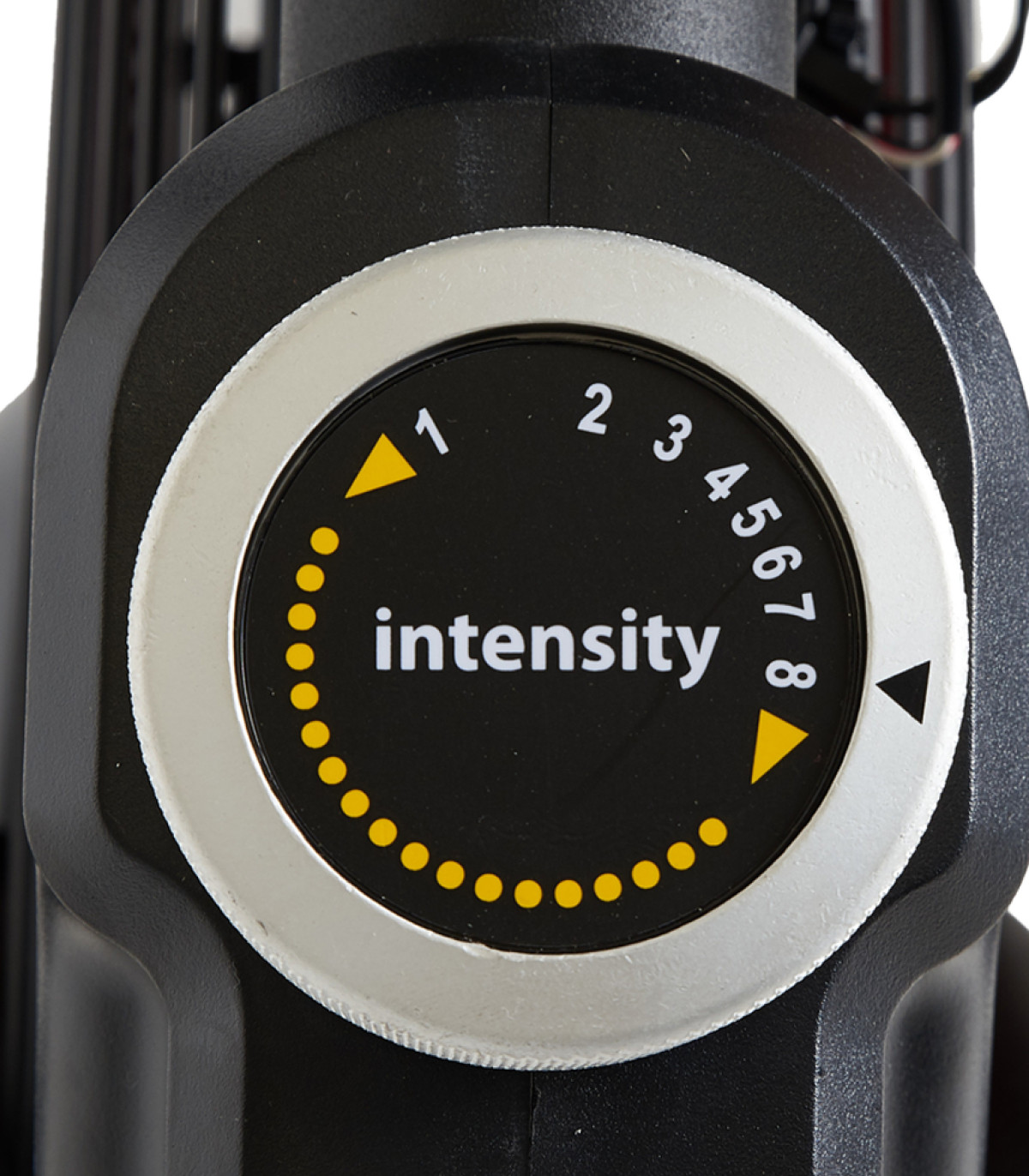 Roue d'inertie : La résistance est produite par une roue "ventilateur" qui augmente la résistance de façon exponentielle d'après la difficulté du pédalage. L'intensité des exercices sur l'appareil est totalement dépendant des efforts individuels de l'utilisateur.