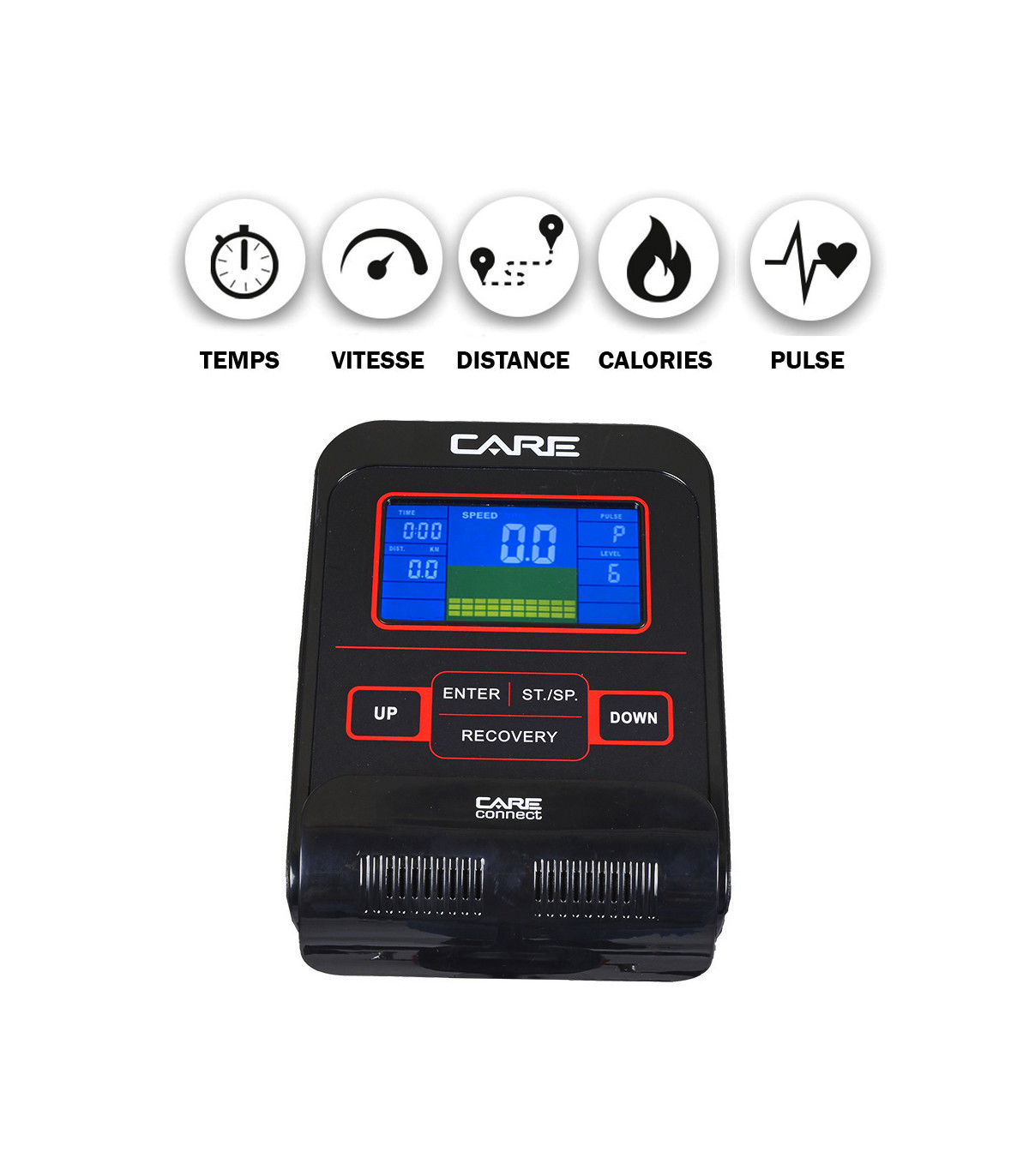 Computer: De Sporter fiets is uitgerust met een console met 7 geïntegreerde functies met programma's die binnen enkele seconden toegankelijk zijn: