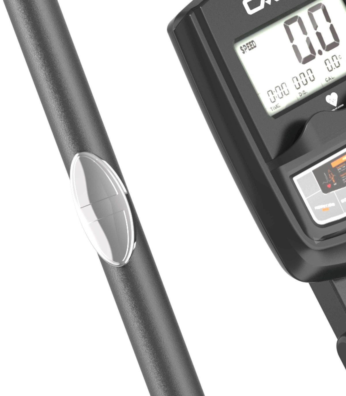 Het geïntegreerde lcd-console toont belangrijke gegevens om uw trainingen te organiseren: verstreken tijd, afgelegde afstand, RPM (aantal stappen per minuut), geschatte verbrande calorieën, BMR (totaal aantal stappen tijdens de sessie), hartslag gemeten door tactiele sensoren, evenals het ontwikkelde vermogen in watt.