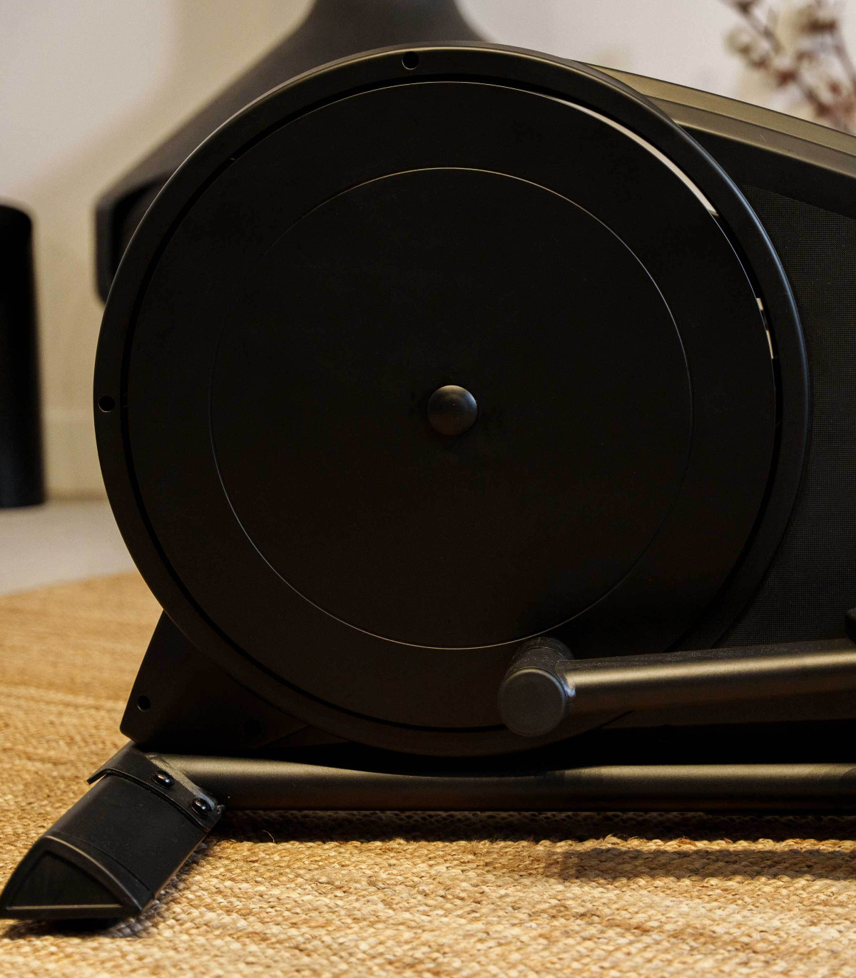 De elliptische trainer Helis is uitgerust met een vliegwiel van 14 kg voor een optimale bewegingsamplitude, antislip pedalen voor betere stabiliteit, en een vloeiend en stil magnetisch weerstandssysteem dat groot comfort bij het trappen biedt en de kwaliteit van uw training verbetert.