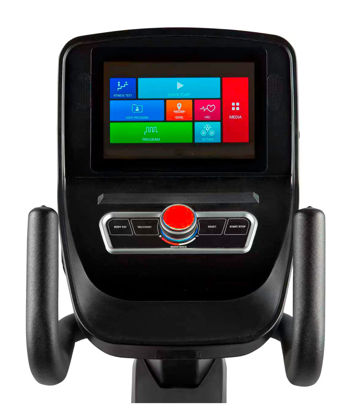 De ROADSTER fiets is een professioneel apparaat uitgerust met 43 programma's en ontworpen voor intensieve trainingen. Met een vliegwiel van 11 kg voor een soepel pedaleren, biedt dit model ook 32 niveaus gemotoriseerde weerstand. Daarnaast beschikt het over geavanceerde multimediafuncties zoals een TFT-touchscreen, ingebouwde luidsprekers, USB-poort en een draadloze verbinding voor de applicatie Kinomap.